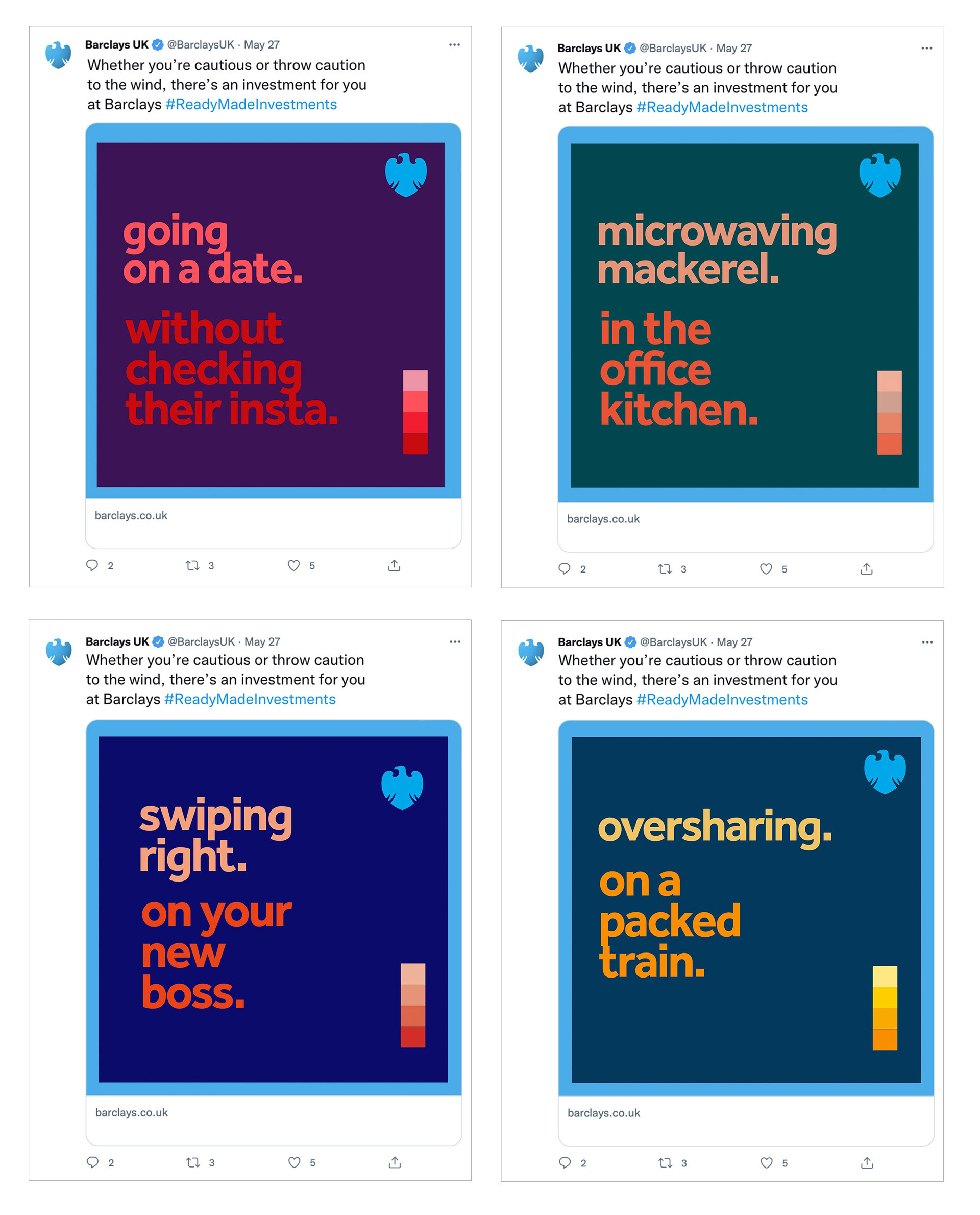 Lots of people think that investing is too risky for them. Our campaign sets out to show them that no matter whether they are cautious or throw caution to the wind, Barclays has a ready-made investment for them.
