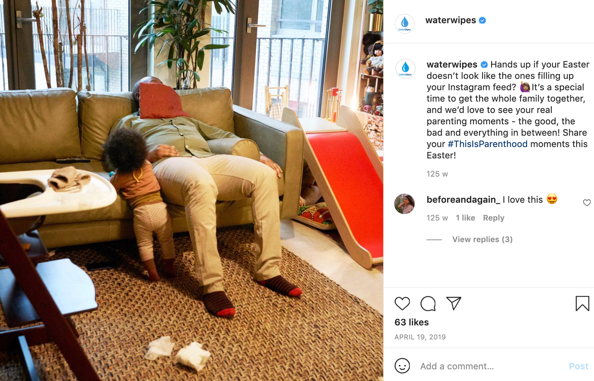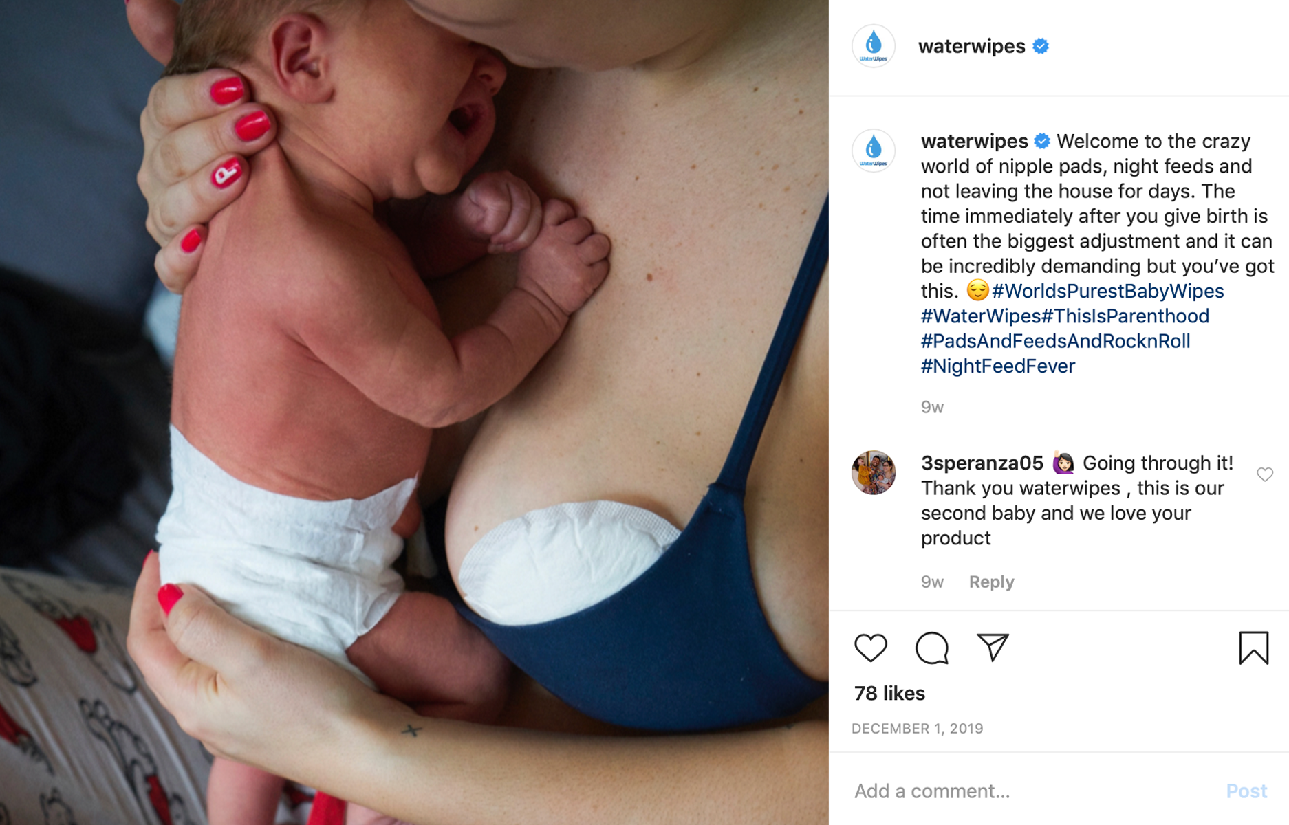 I worked on developing the content calendar for Waterwipes social platforms. The additional footage that we used online was totally unfiltered and shot by the parents themselves during the first few months of parenthood.